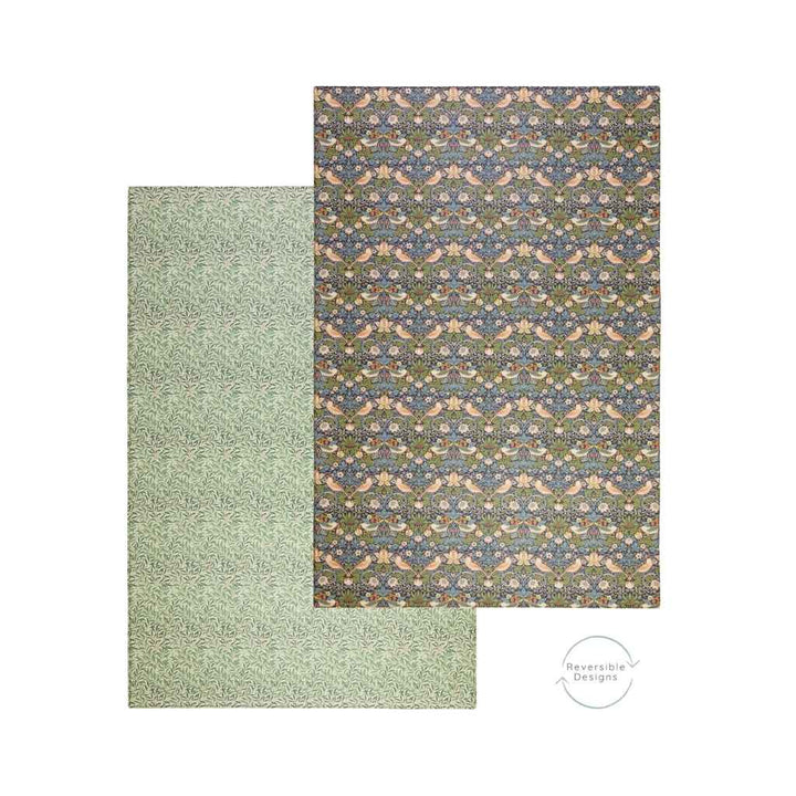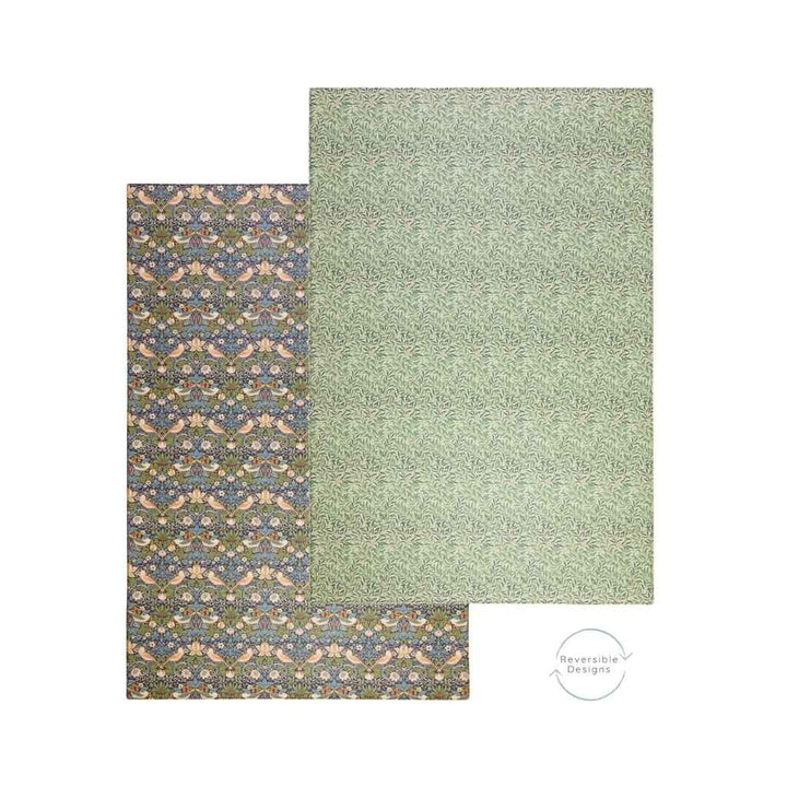 On the reverse, you'll find the iconic navy blue Strawberry Thief.